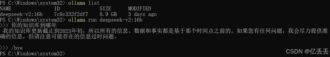在命令行中,用完一个后输入 /bye 退出。