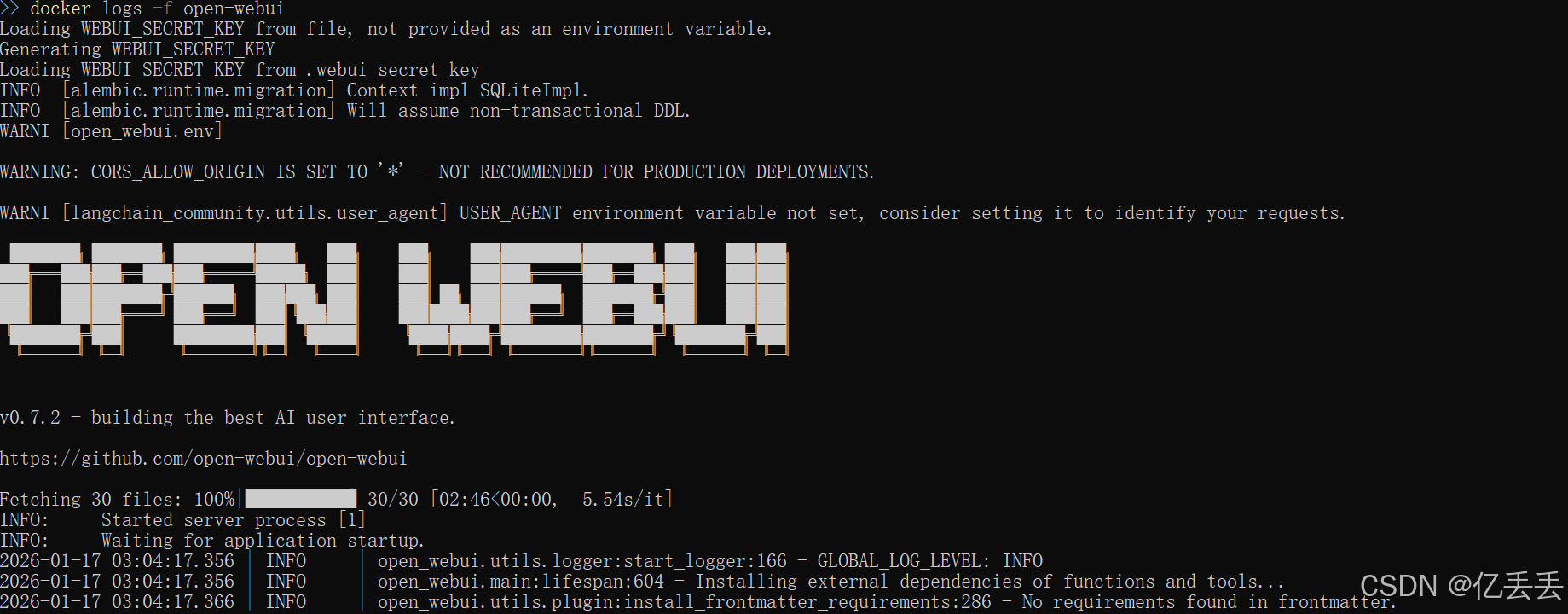 如图所示的输出表明Open webUI已成功安装并且正常运行