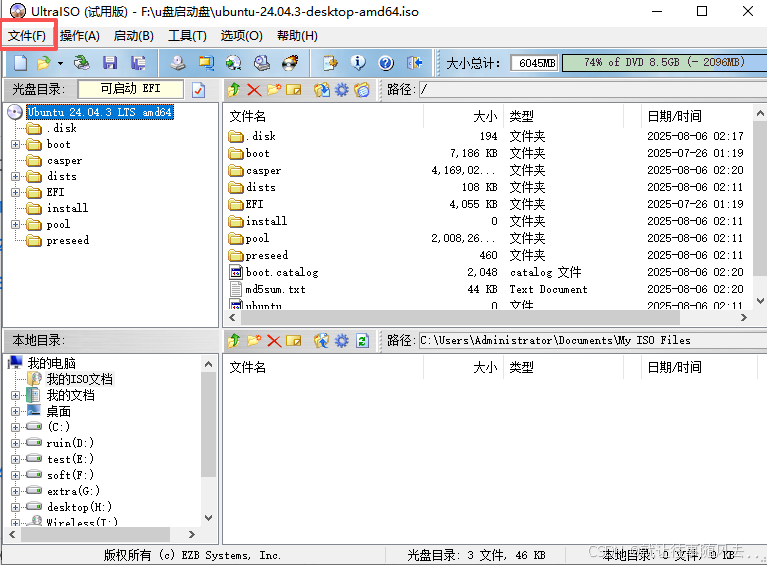 (1) 使用 UltralSO,软件下载地址(试用版就行):https://cn.ultraiso.net/xiazai.html