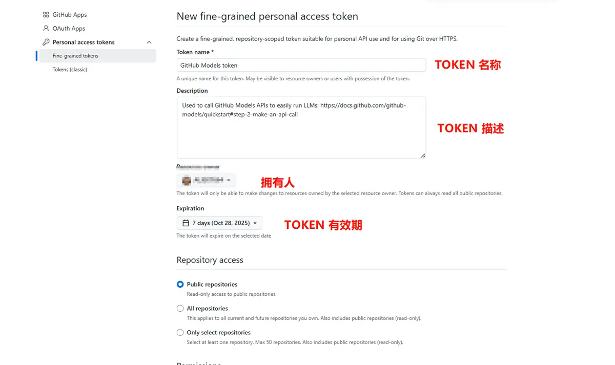 使用时需要申请 API Key(GitHub Token)。