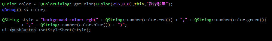 2、 QColorDialog(const QColor &initial, QWidget *parent = nullptr)//创建对象的同时通过QColor对象设置默认颜⾊和⽗对象