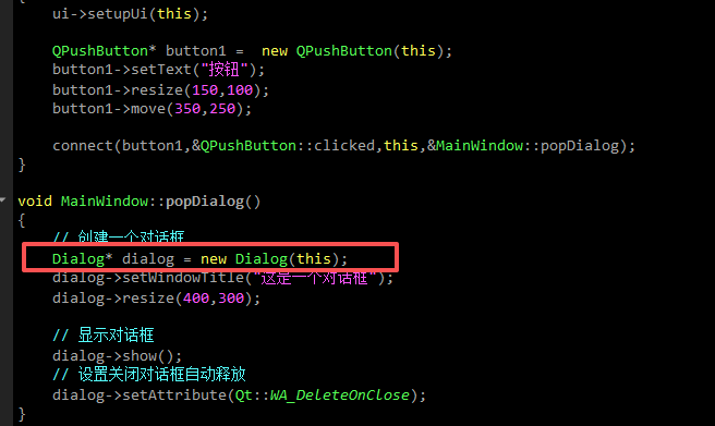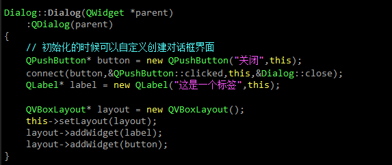 1)创建一个类继承于QDialog