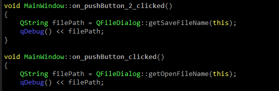 2、打开多个⽂件(⼀次可以打开多个⽂件)QStringList getOpenFileNames(QWidget *parent = nullptr, const QString &caption = QString(), const QString &dir = QString(), const QString &filter = QString(), QString *selectedFilter = nullptr, QFileDialog::Options options = Options())