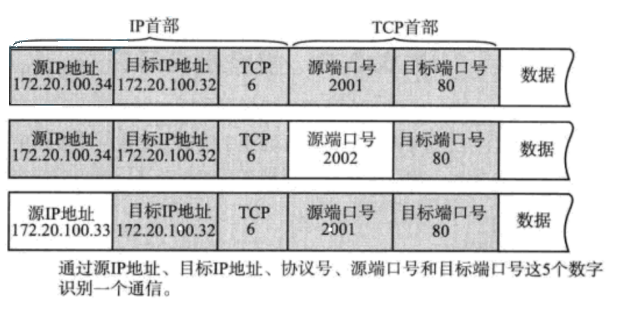 在TCP/IP协议中,用"源IP","源端口号","目的IP","目的端口号","协议号"这样一个五元组来标识一个通信(可以通过netstat -n 命令来查看)