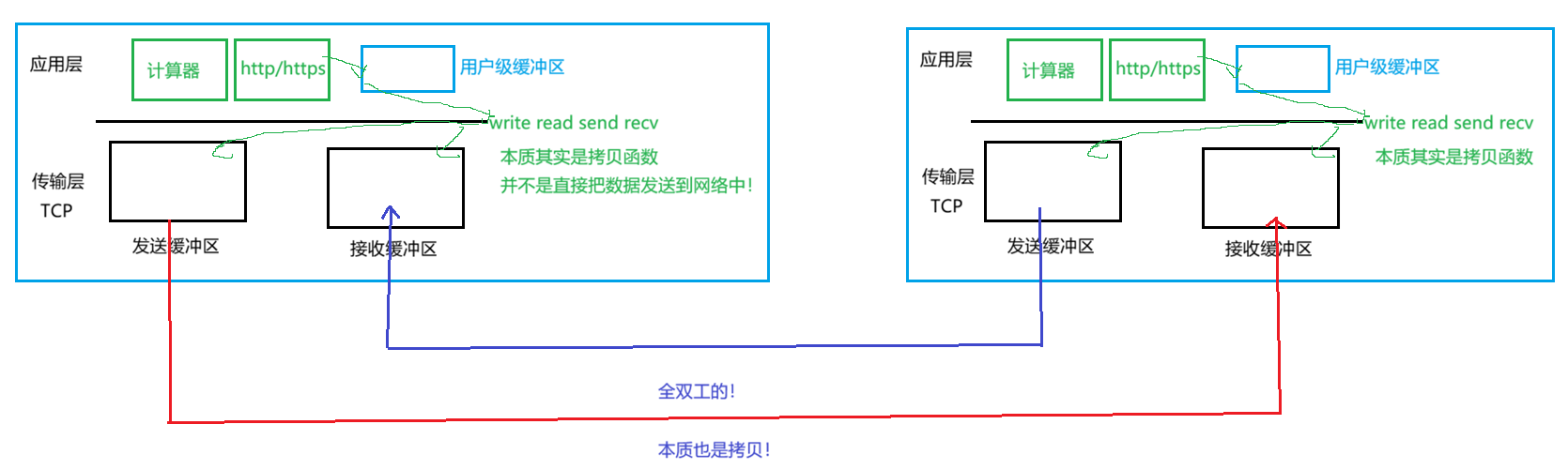另一方面,TCP的一个连接,既有发送缓冲区,也有接收缓冲区 ,那么对于这一个连接,既可以读数据,也可以写数据,这个概念叫做全双工。