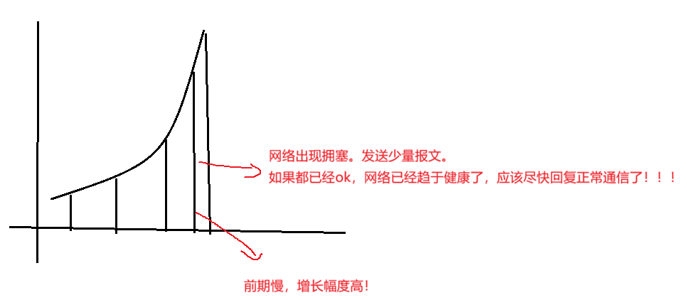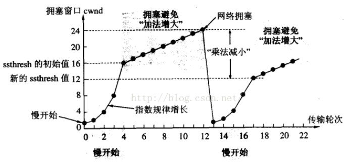 此处引入一个叫做慢启动的阈值。当拥塞窗口超过这个阈值的时候,不再按照指数方式增长,而是按照线性方式增长。