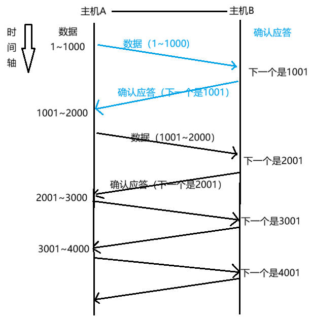 每一个ACK都带有对应的确认序号,意思是告诉发送者,我已经收到了哪些数据,下一次你从哪里开始发。