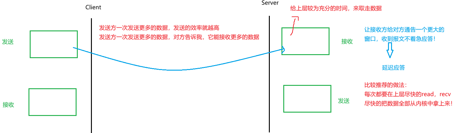 一定要记得,窗口越大,网络的吞吐量就越大,传输效率就越高,我们的目标是在保证网络不拥塞的情况下尽量提高传输效率。
