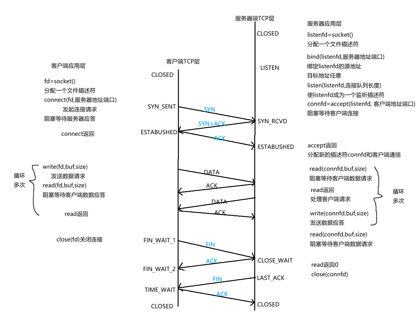 创建一个TCP的socket,同时在内核中创建一个发送缓冲区和一个接收缓冲区。
