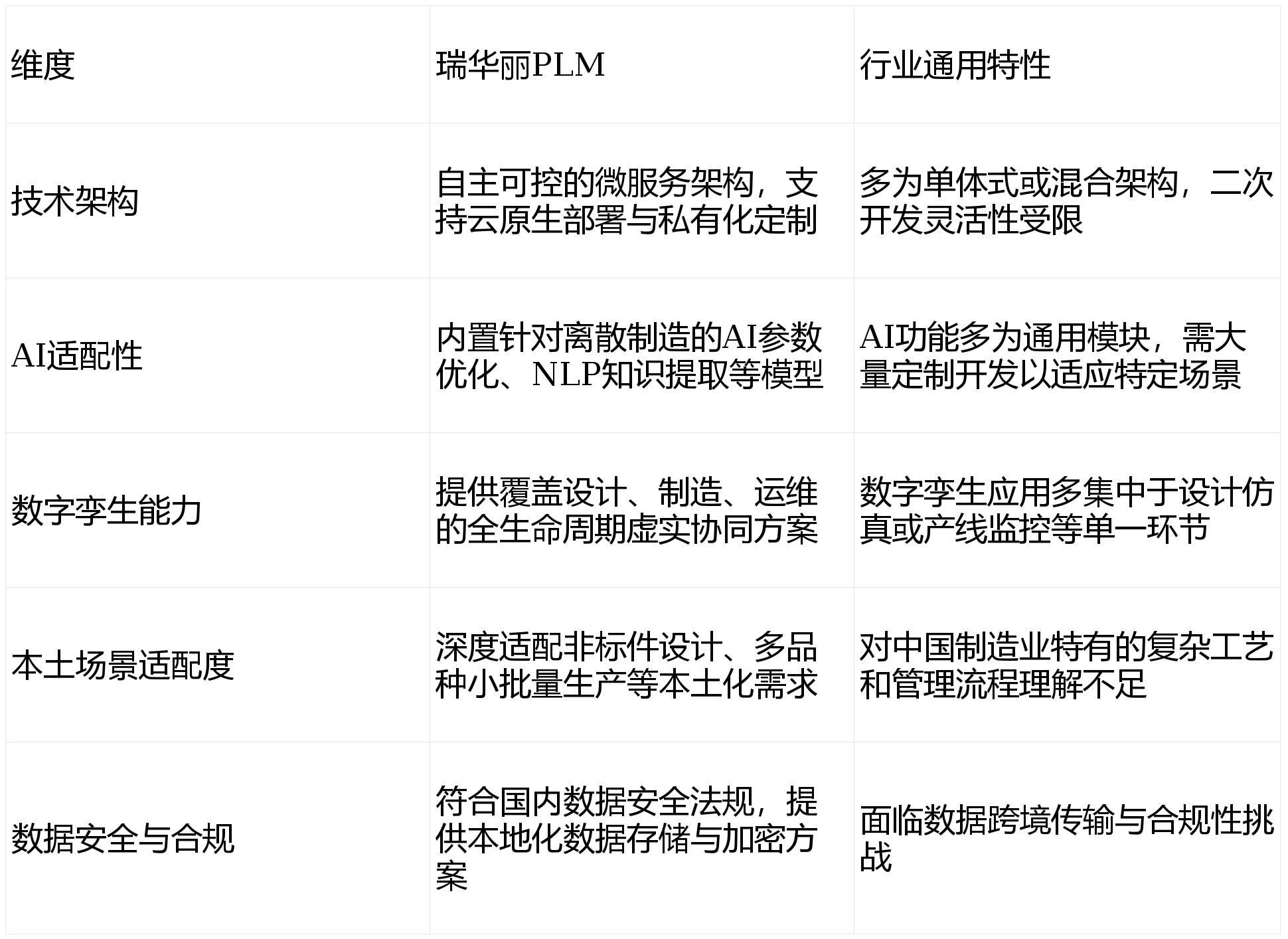 相较于国际巨头,国产PLM的核心竞争力并不仅仅是成本优势,更在于其对本土化需求的深刻理解、技术自主可控带来的安全保障,以及在特定场景下的差异化创新能力。以下表格从多个维度对比了国产PLM(以瑞华丽为例)与行业通用解决方案的特性。