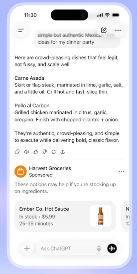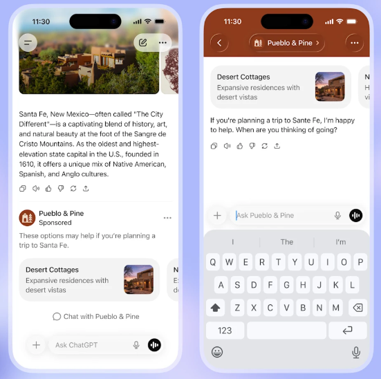 🧩广告展示示例:独立展示于对话最下面,并会清晰标注,不会影响 ChatGPT 给出的回答