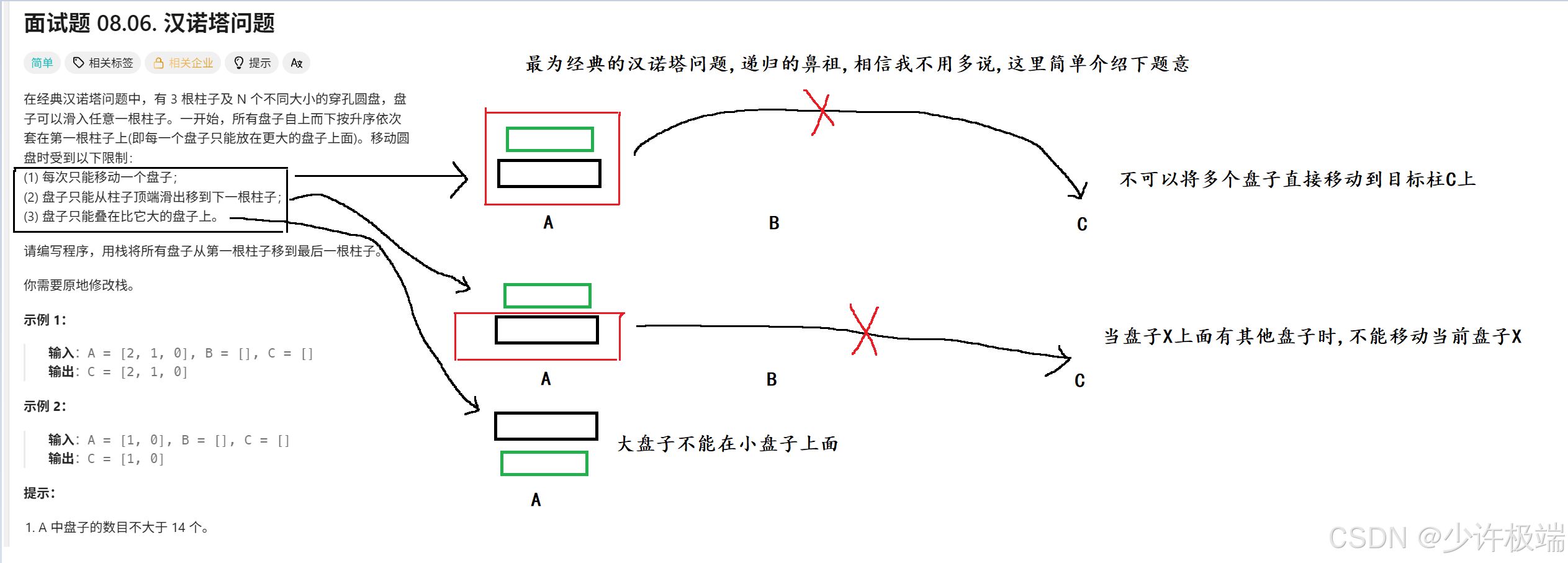 - [一. 力扣 [面试题 08.06. 汉诺塔问题](https://leetcode.cn/problems/hanota-lcci/description/)](#一. 力扣 面试题 08.06. 汉诺塔问题)