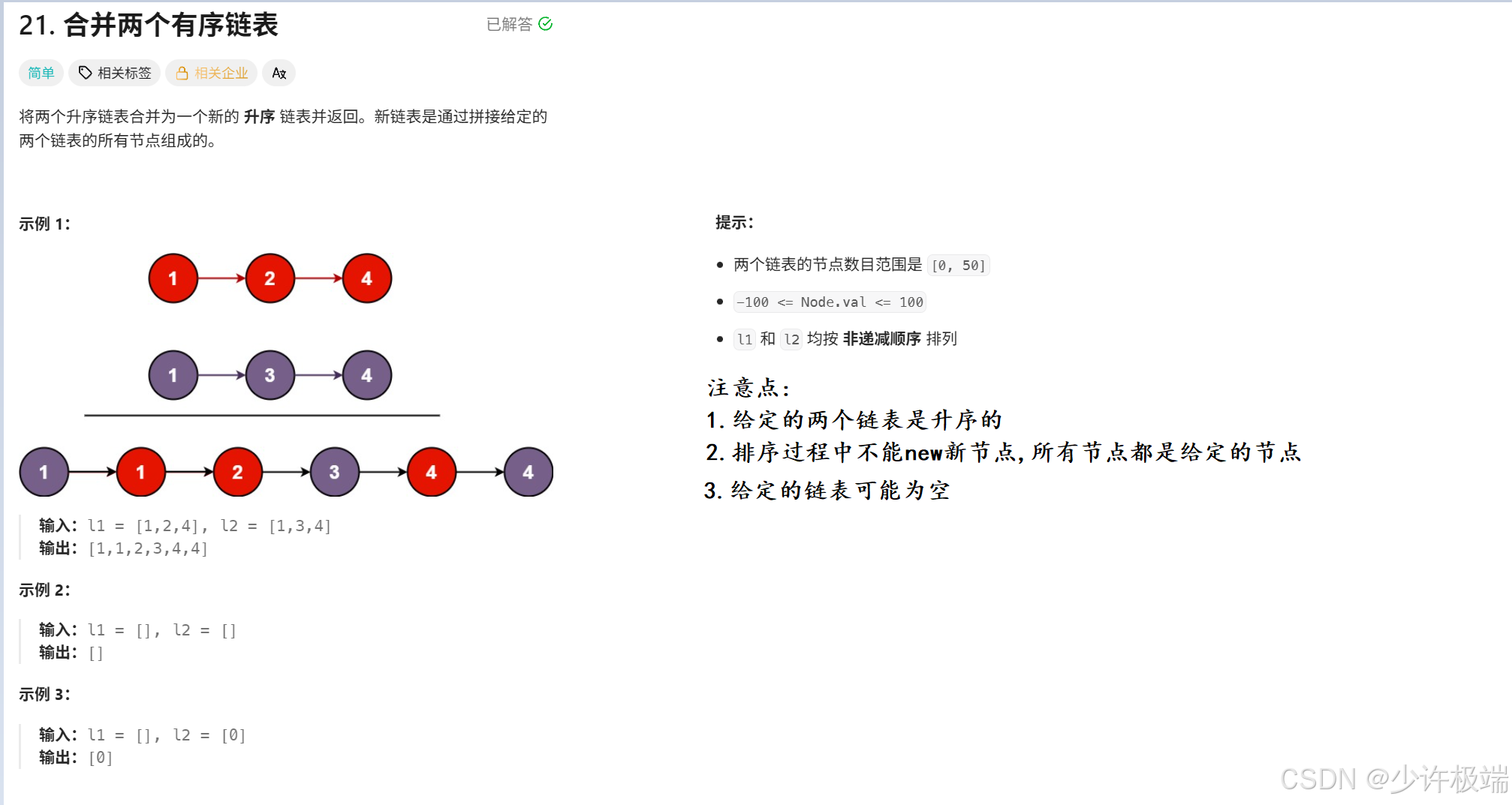 - [二. 力扣 [21. 合并两个有序链表](https://leetcode.cn/problems/merge-two-sorted-lists/description/)](#二. 力扣 21. 合并两个有序链表)