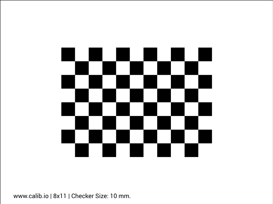 上述为本人使用的样式,然后打印为A4纸张。但是最终实际测量一个小方格的边长为13mm。需要根据实际测算的边长进行更改。然后方格数量为8 * 11 ,由此可知,角点数量为7 * 10,(角点就是实际上的两个方块相交的点)。然后将标定板固定到一个完全平滑的板子上。