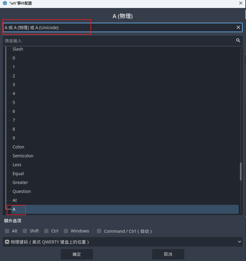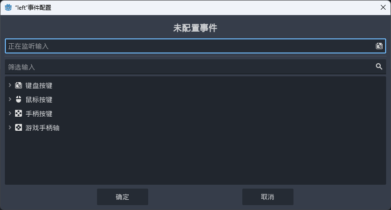 - 然后就会弹出这个事件配置,这个时候godot是在进行监听我们键盘的输入