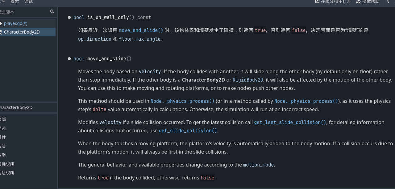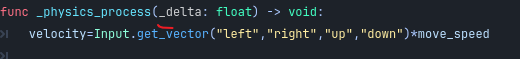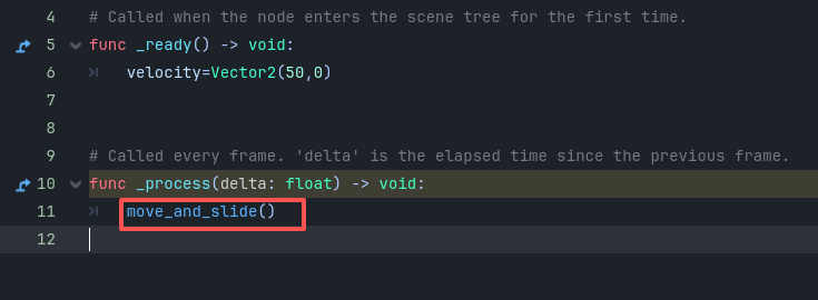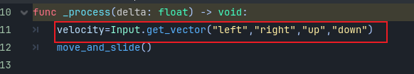 - 在我们在process的函数中加入move_and_slide(),这样子我们的玩家就会根据我们上面的设置进行移动