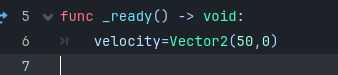 - velocity是速度,然后用二维向量来设置玩家在2d平面上的移动速度,里面的2个参数分别是x轴的移动速度和y轴的移动速度,比如说这里是玩家在x轴的移动速度是50,y轴的移动速度是0.这里设置好属性之后,我们需要进行执行移动