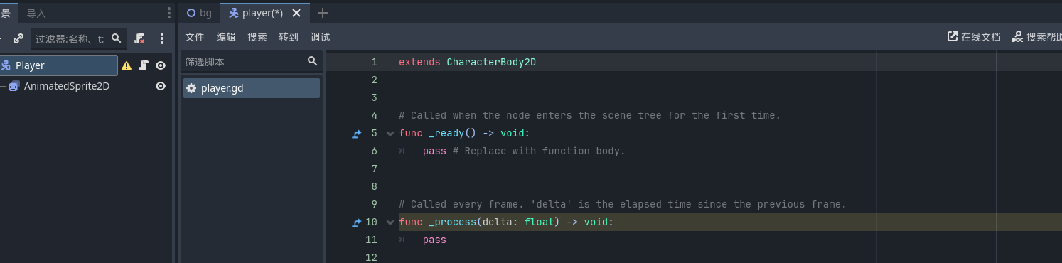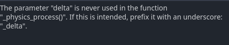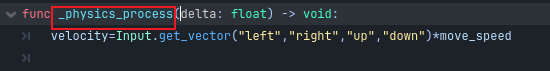 - 这里做代码修改,因为_process函数是每一帧会运行一次,但是有些电脑是每秒100帧、120帧等等,会计算很多次,所以我们需要把这个函数改为_physics_process,这个函数是以固定的时间间隔进行运行的,而官方编辑器默认的时间间隔是1秒60帧