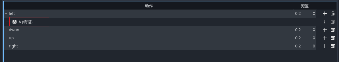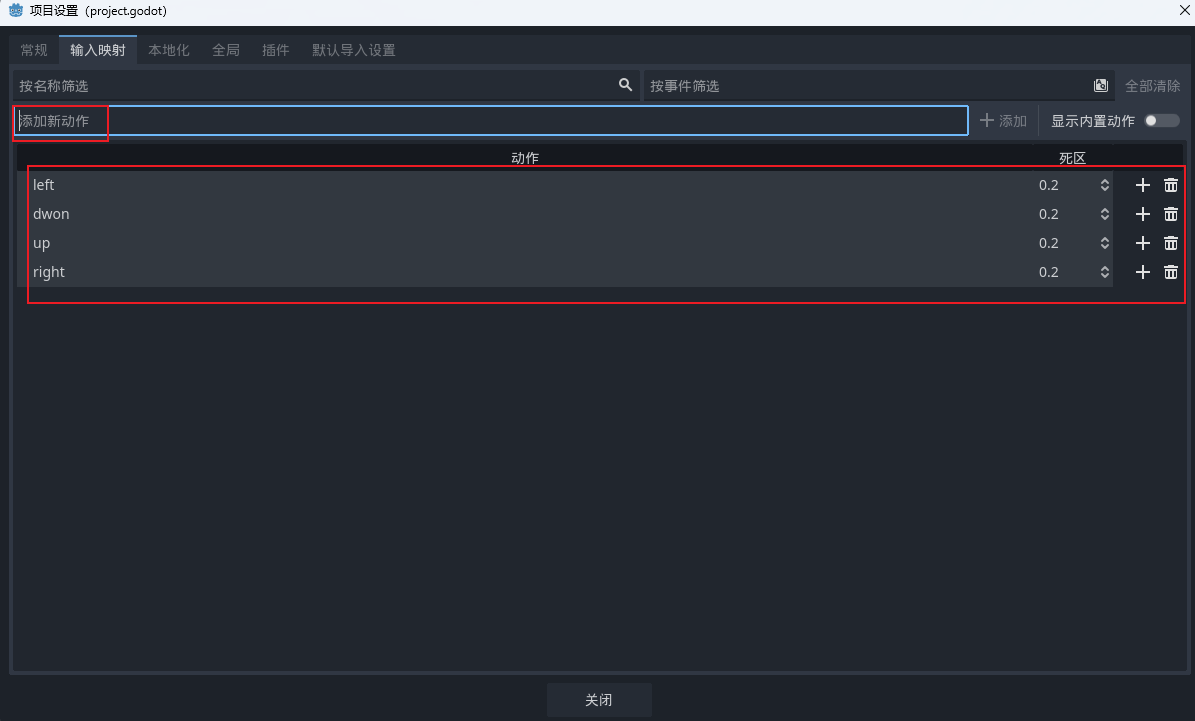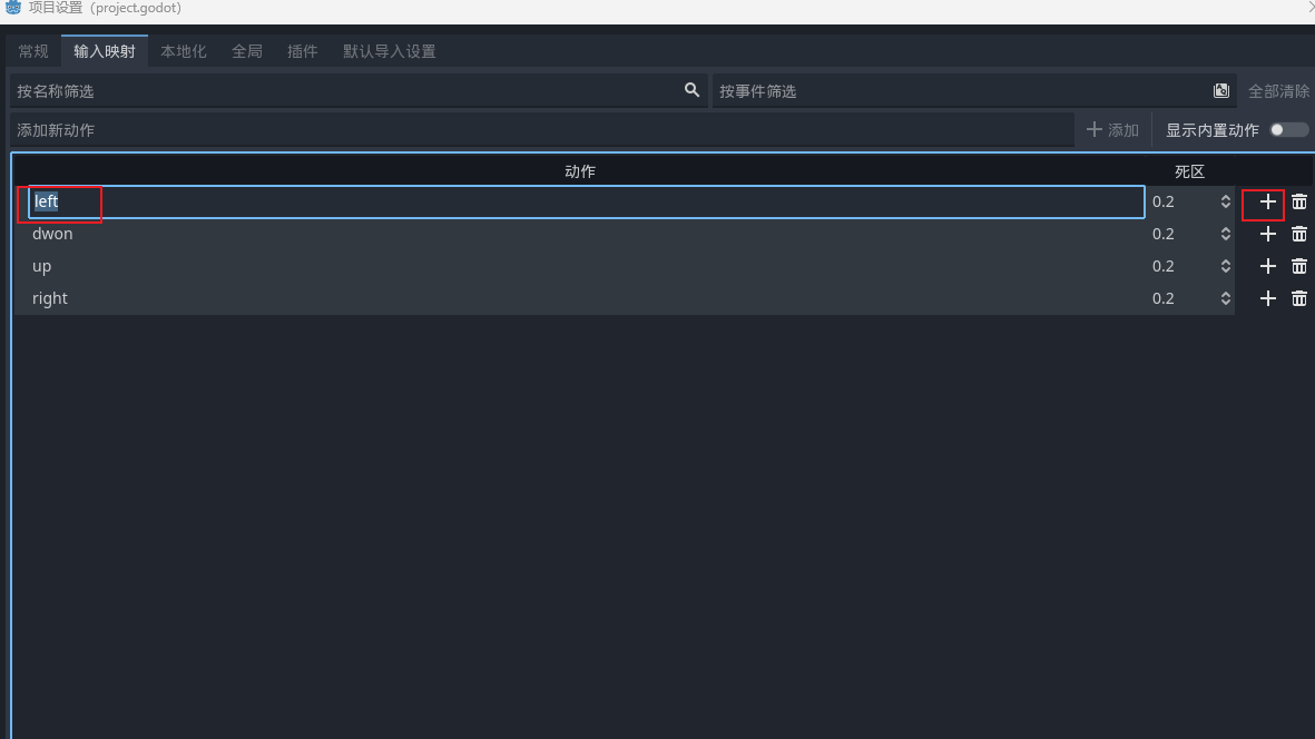 - 让我们找输入映射这一块,添加新动作,把right,up,down,left添加进去