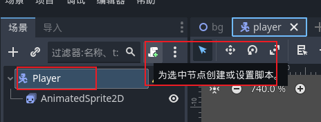 - 选中左上角玩家的根节点,然后点击右上角的那个卷轴图标到门口创建脚本