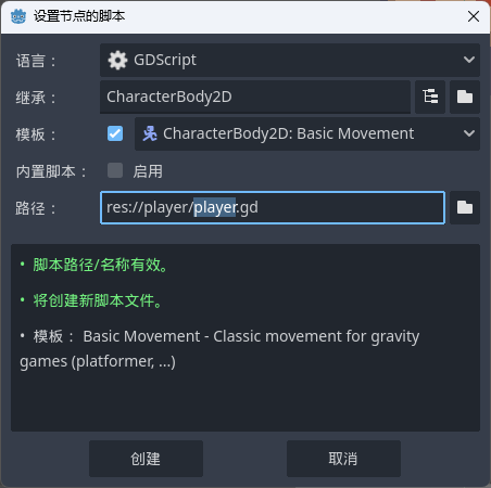 通过在玩家根节点创建并挂载脚本,完成角色初始化与移动功能的实现。首先在