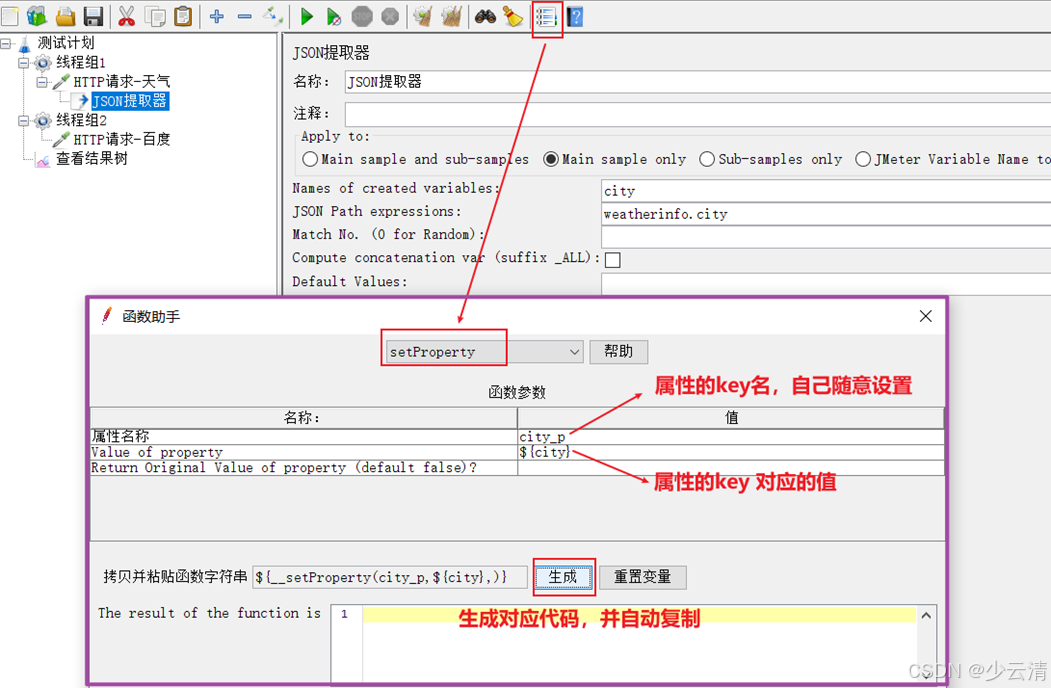 1. __setProperty函数:将值保存成jmeter属性