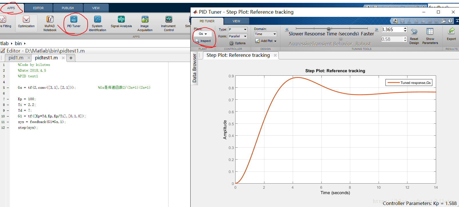 show parameter可查看控制器整定参数与响应曲线特征量(超调量、调节时间、稳态误差等); - 点击