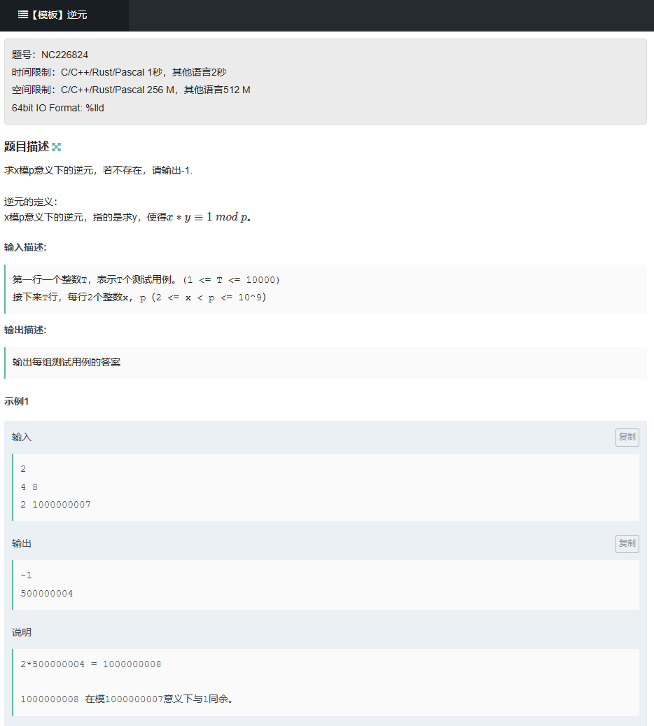 [五、实战例题 2:牛客网【模板】逆元](#五、实战例题 2:牛客网【模板】逆元)