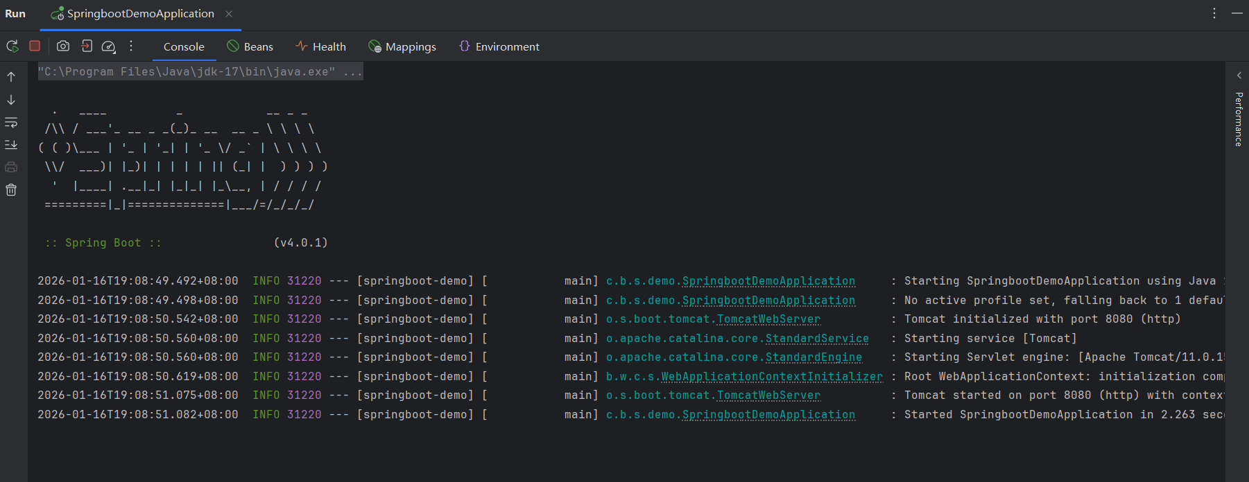 我们只需要点开根目录下创建好的启动类运行其中的main方法就好了。