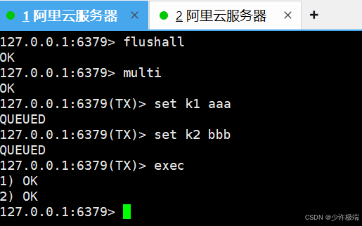 这里和MySQL中的原子性还有点不同, MySQL是就爱那个多个操作打包到一块, 要么全都执行成功, 要么全都不执行, 这里差一点就体现出来了, 相比于Redis, MySQL中的原子性规范性更强, 当有一个操作失败会整体回滚, 而Redis中多个操作是一块执行了, 但是成不成功就全靠造化