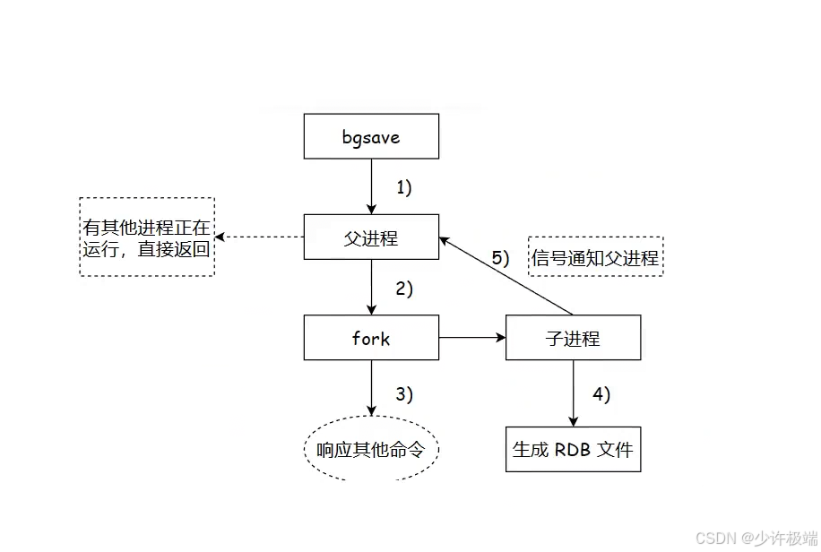 1. 当执行bgsave时, 先判断是否有其他子进程正在进行bgsave操作, 如果有, 直接返回
