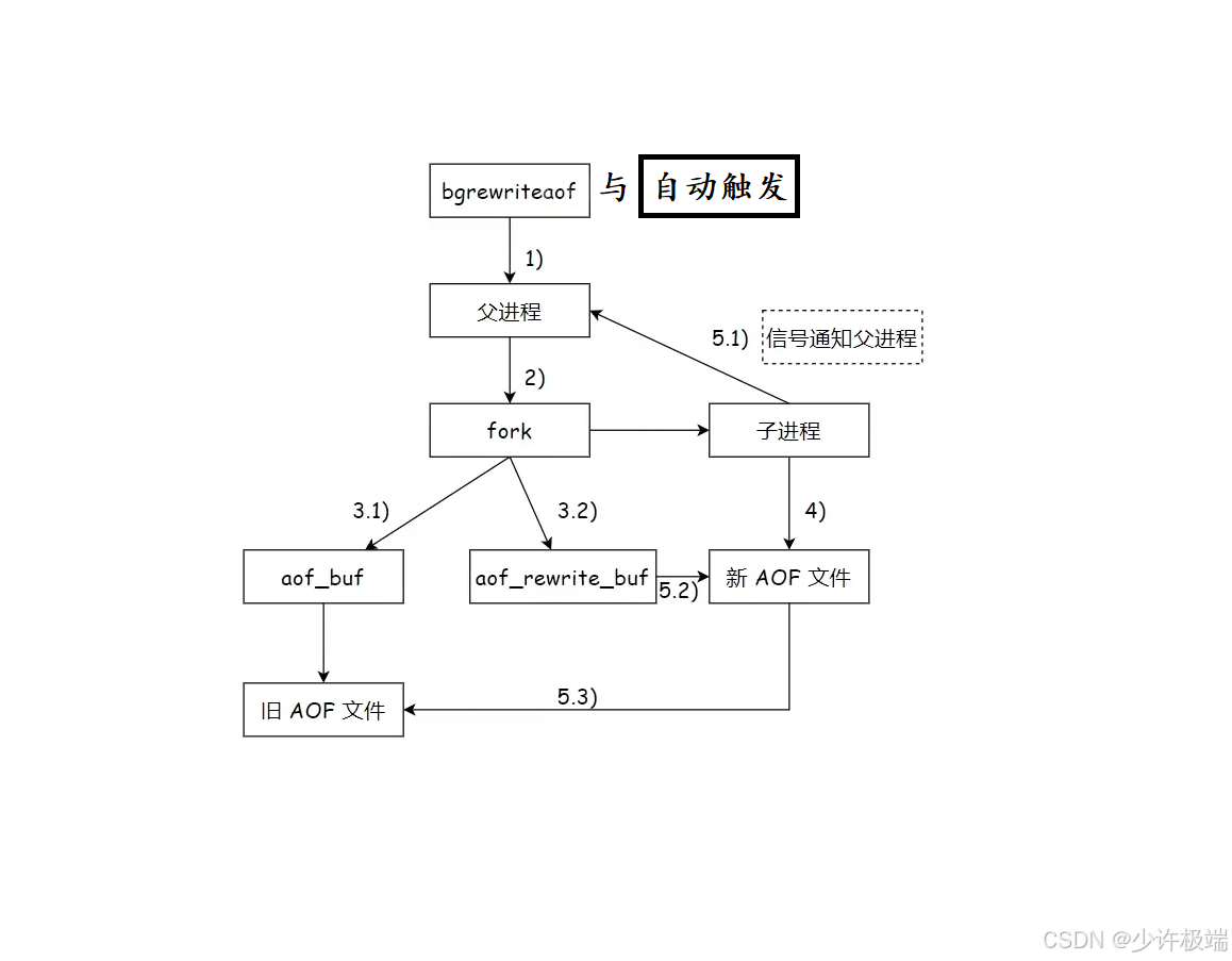 5. 在子进程写入新AOF文件期间, 父进程继续坚持往旧AOF文件写入数据的意义是, 为了应对一些突发和极端情况导致服务器突然宕机/崩溃, 导致新的AOF文件数据残缺不全无法使用, 重启Redis时可以从旧的AOF文件读取到完整数据, 因此可以起到兜底的作用, 这个过程是不可或缺的