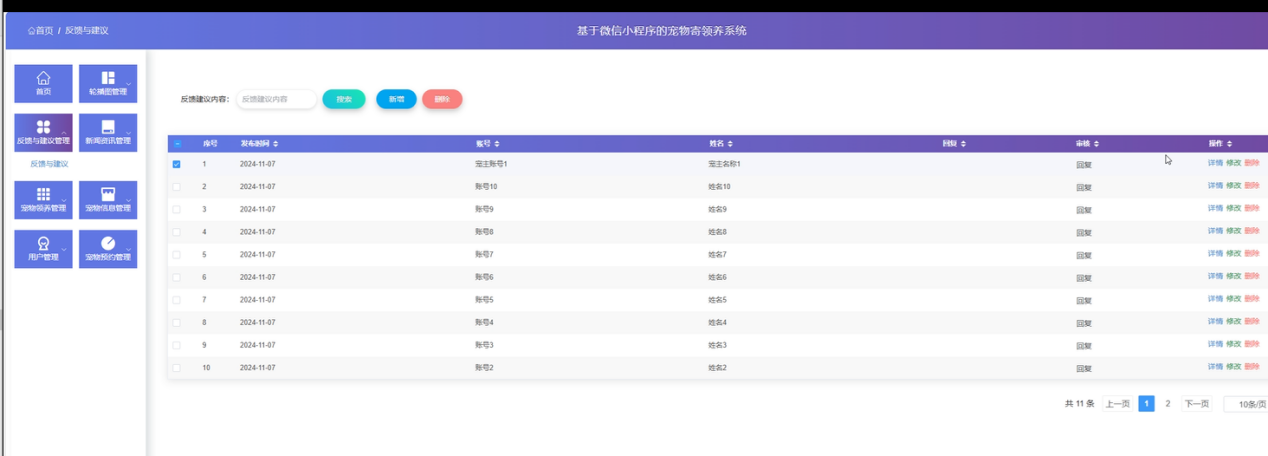 全流程信息管控与安全保障:强化宠物信息审核、用户数据加密、订单流程追溯,解决传统平台信息杂乱、隐私泄露等问题,同时通过数据备份、事务处理功能确保数据完整性与安全性。