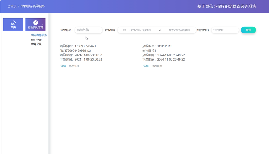 随着城市化进程加快与居民生活水平提升,宠物成为众多家庭的重要成员,宠物产业随之蓬勃发展,但宠物管理环节存在明显短板。传统宠物管理依赖人工记录,效率低下且易出错,而现有宠物管理平台普遍存在功能单一、用户体验差、信息安全性不足等问题,无法满足宠物主人在寄养、领养、健康护理、走失寻回等方面的多元化需求。在此背景下,开发一款基于微信小程序的功能全面、操作便捷、安全可靠的宠物寄领养系统,通过信息化手段优化管理流程、整合行业资源,推动宠物行业规范化发展,成为行业迫切需求。