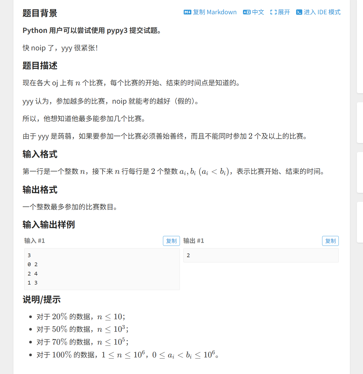 - 读入所有区间,同时记录原始编号(因为后面要排序)