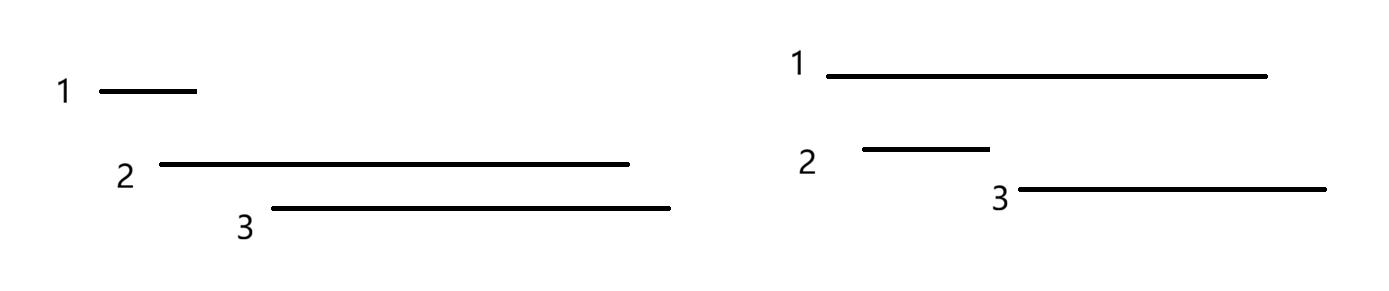 我们排完序后肯定是1的左端点小于2的左端点的,那么两种情况无非是1的右端点大于或者小于2的右端点