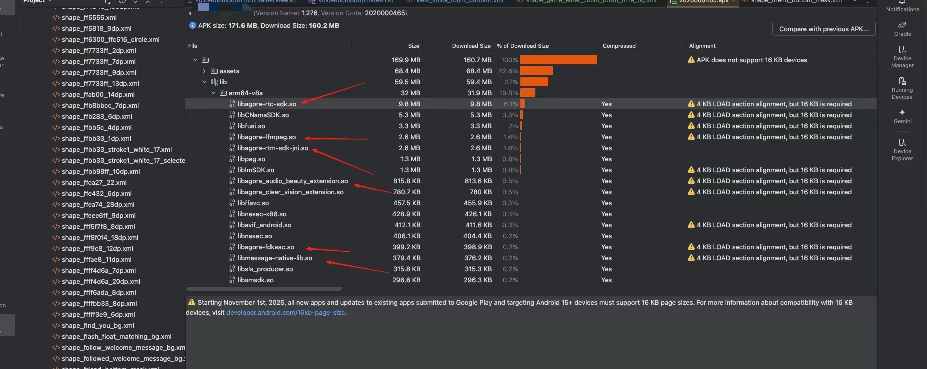 第三方Native库集成:依赖FFmpeg、OpenSSL等第三方库时,需验证其16KB Page Size兼容性。