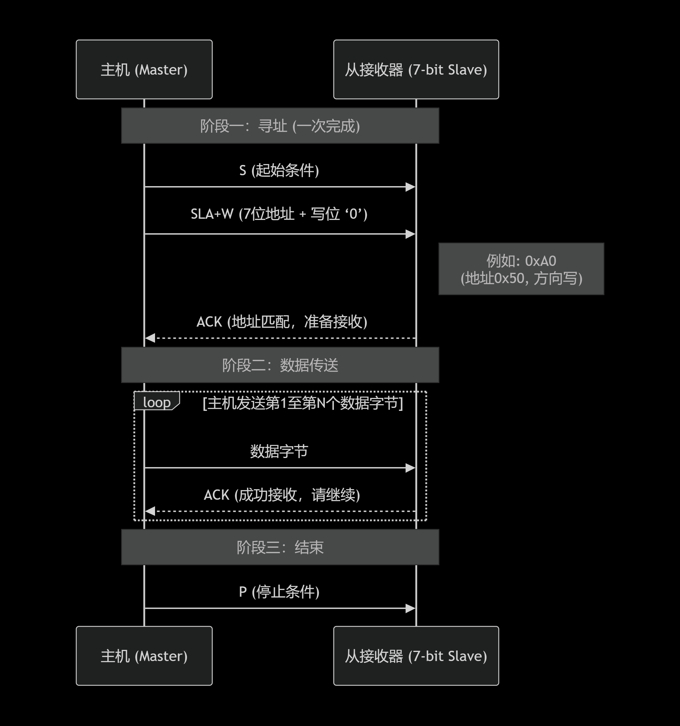 - 从机视角 :对于STM32从机,在收到第一个地址字节(