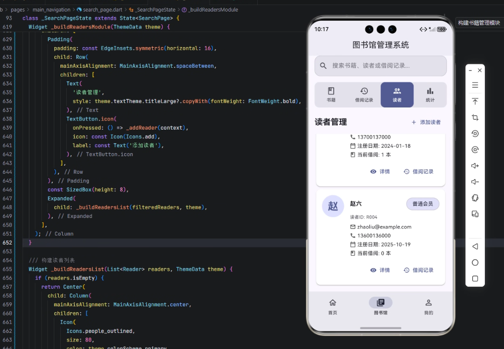 以下是读者管理模块的核心 Widget 构建代码及解析: