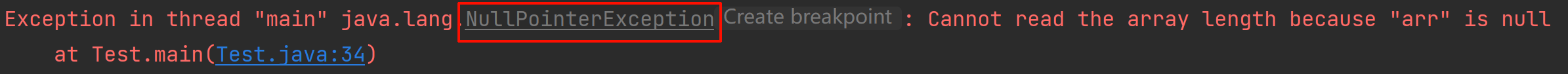 给数组赋null值后,如果再次操作数组的话会报错---NullPointerException空指针异常,如下图: