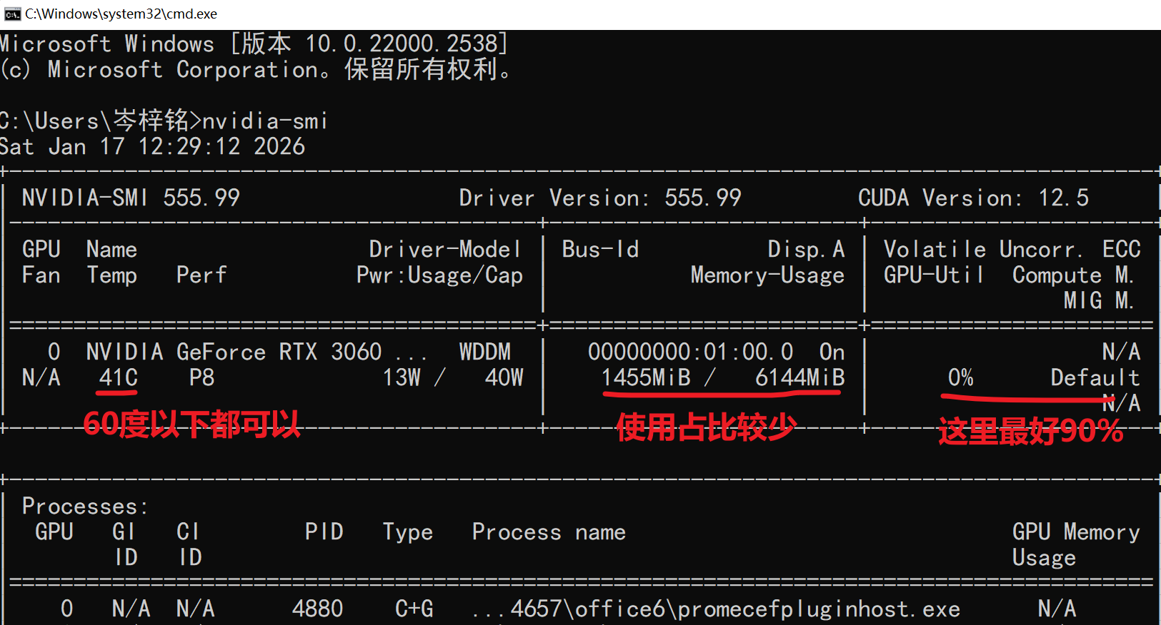 但实际这样并没有最大程度利用我们的GPU,我们输入命令【nvidia-smi】可以看到我们的显卡信息就可以看到我们是并没有充分利用的