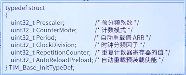 句柄的初始化结构体:TIM_Base_InitTypeDef