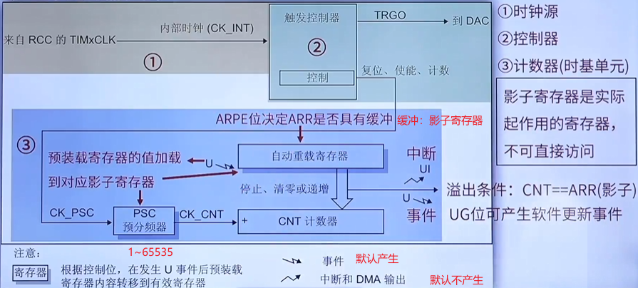 2.由于基本定时器没有时钟分频因子的寄存器。所以只有在通用、高级定时器才有效。