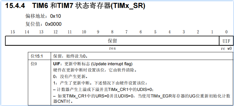 用于判断是否发生了更新中断,由硬件置1,软件清零。