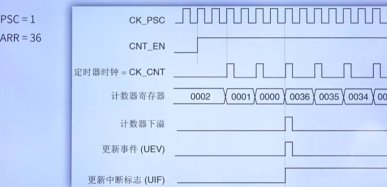 :自动重装载寄存器的值,需要 ARR+1才是溢出时间