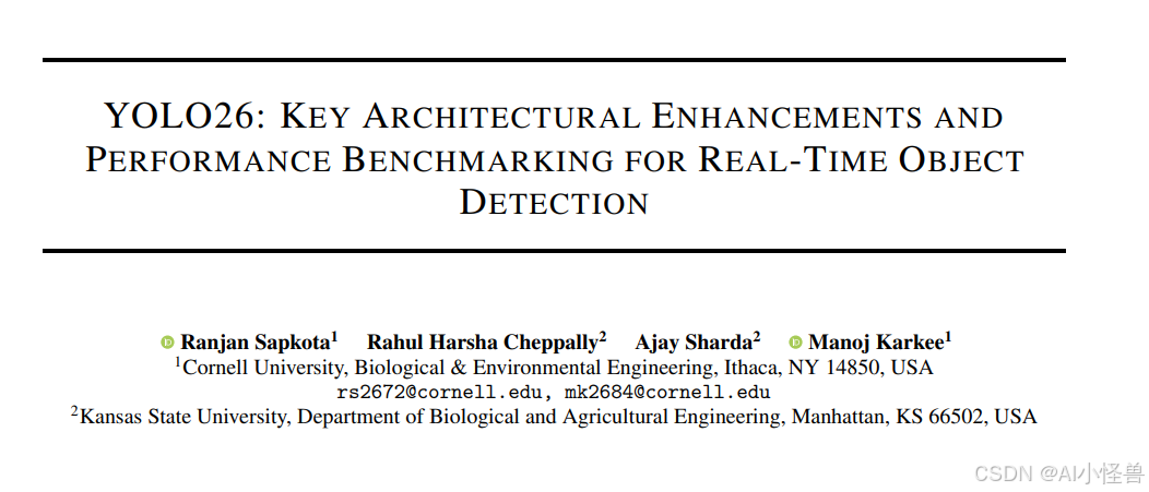关键词:YOLO26;边缘人工智能;多任务目标检测;无NMS推理;小目标识别;YOLO(You Only Look Once);目标检测;MuSGD优化器