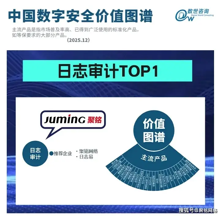 在安全回归实效的行业背景下,权威研究机构数世咨询近日正式发布《中国数字安全价值图谱(2025年12月更新版)》。本次图谱评选标准显著升级,聚焦于那些在真实业务场景中经受反复验证、具备明确交付价值的安全解决方案。聚铭网络凭借扎实的产品落地能力与客户实效导向,再次被列为"日志审计"领域的核心推荐厂商。