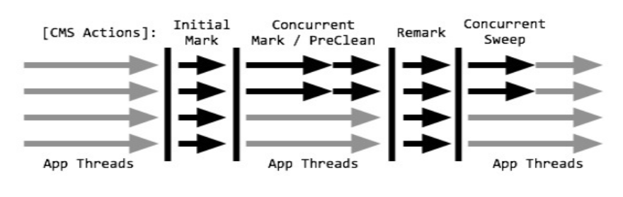 | CMS | 老年代 | B/S系统,重视响应速度 | -XX:+UseConcMarkSweepGC |