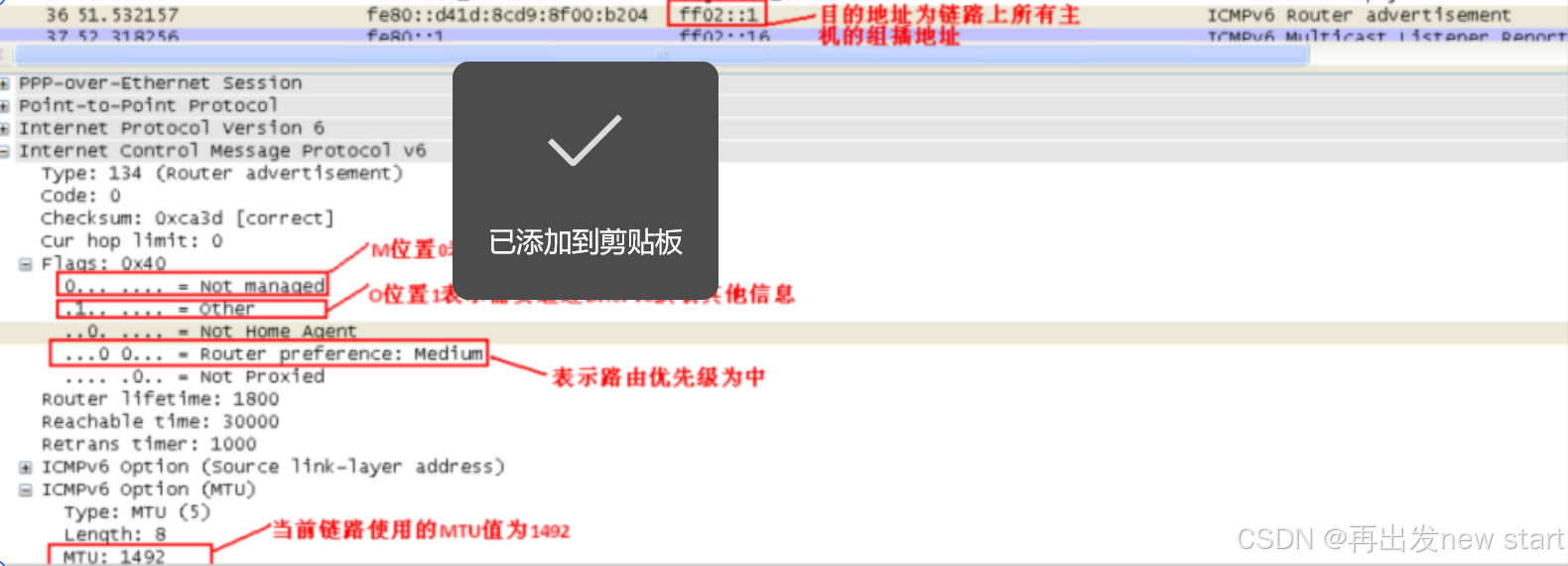 ff02::1(所有节点组播地址 )的 RA 报文。